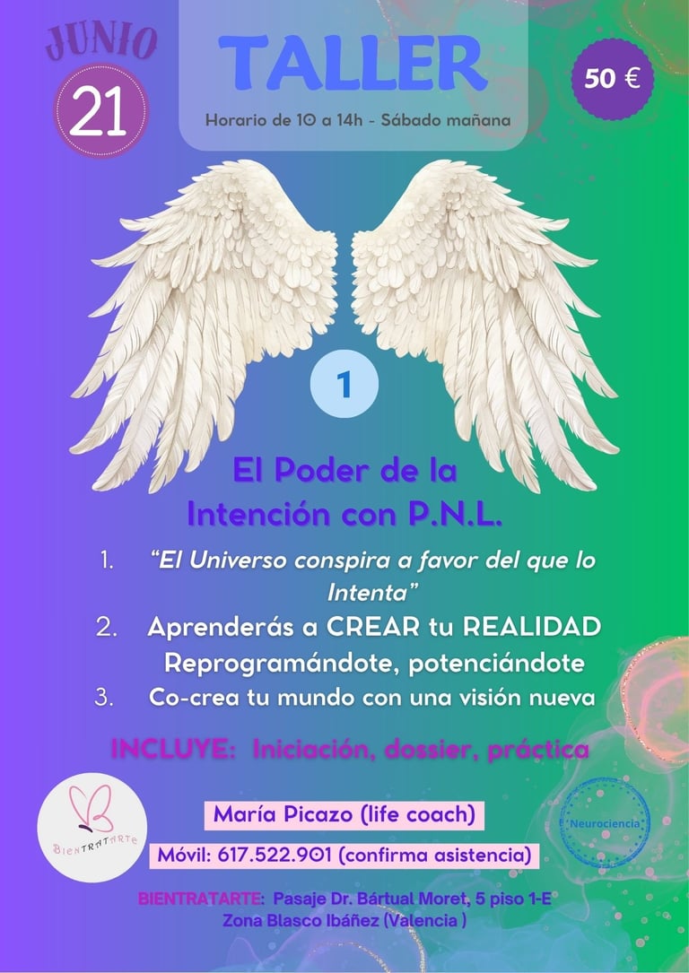 El Poder de la Intención en Valencia. Taller sábado 21 junio por la mañana en Valencia - Aprenderás a CREAR tu REALIDAD y manifestar correctamente. Facilita Maria Coach de Vida - en la sala de trabajo BIENTRATARTE de la zona Blasco Ibáñez - Whatsapp https://wa.me/34617522901 : #elpoderdelaintencion #poderdelaintencionvalencia #personasconalma